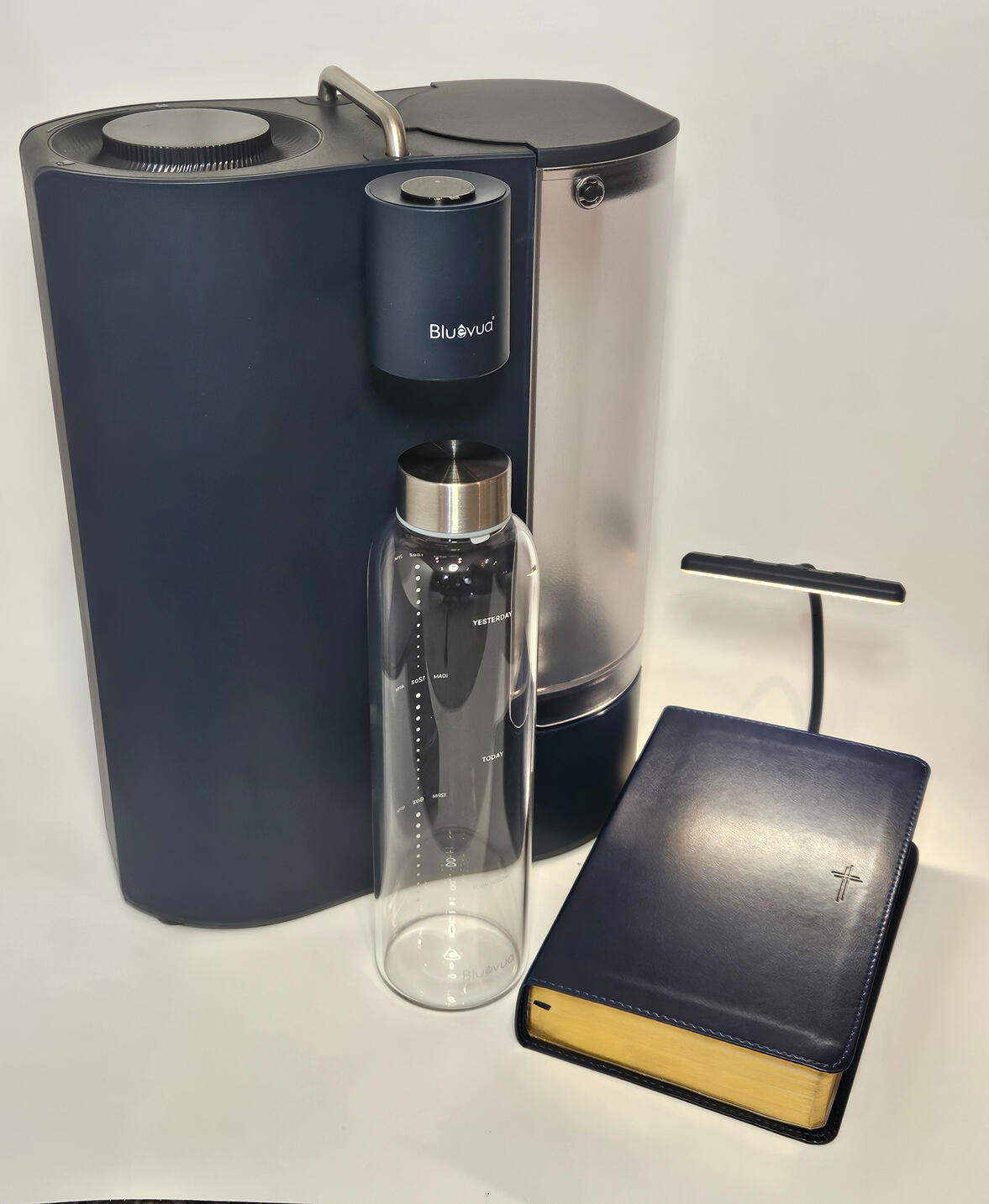 A complete portable water filtration system paired with faith-based encouragement materials — prepared with care and delivered with dignity.